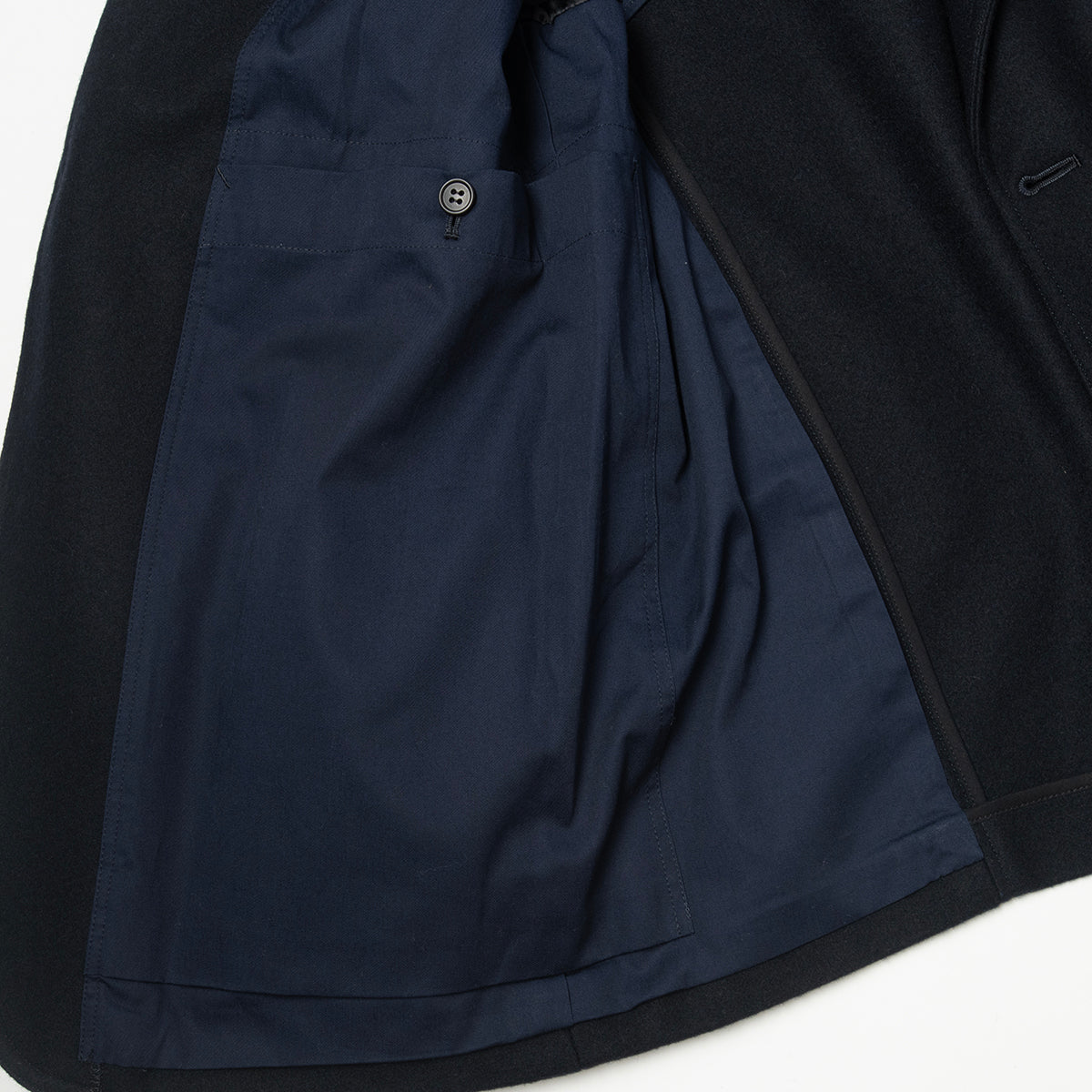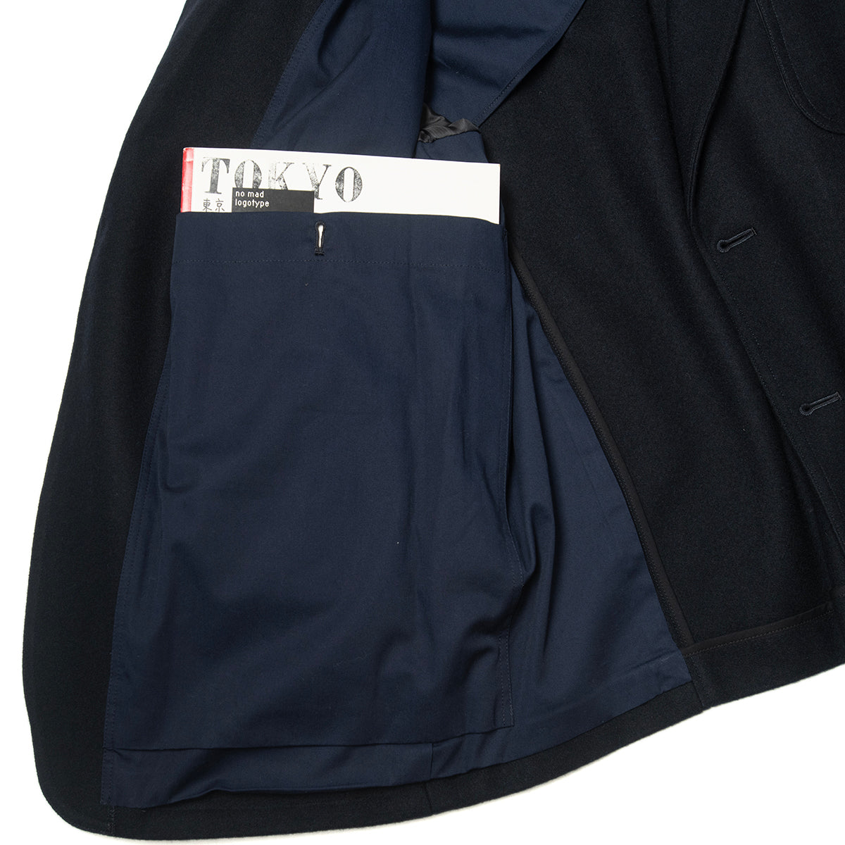 また、メルトン生地は防寒性が高く風を通しにくいものを使用しました。神田での古本屋巡りにピッタリな1着です。