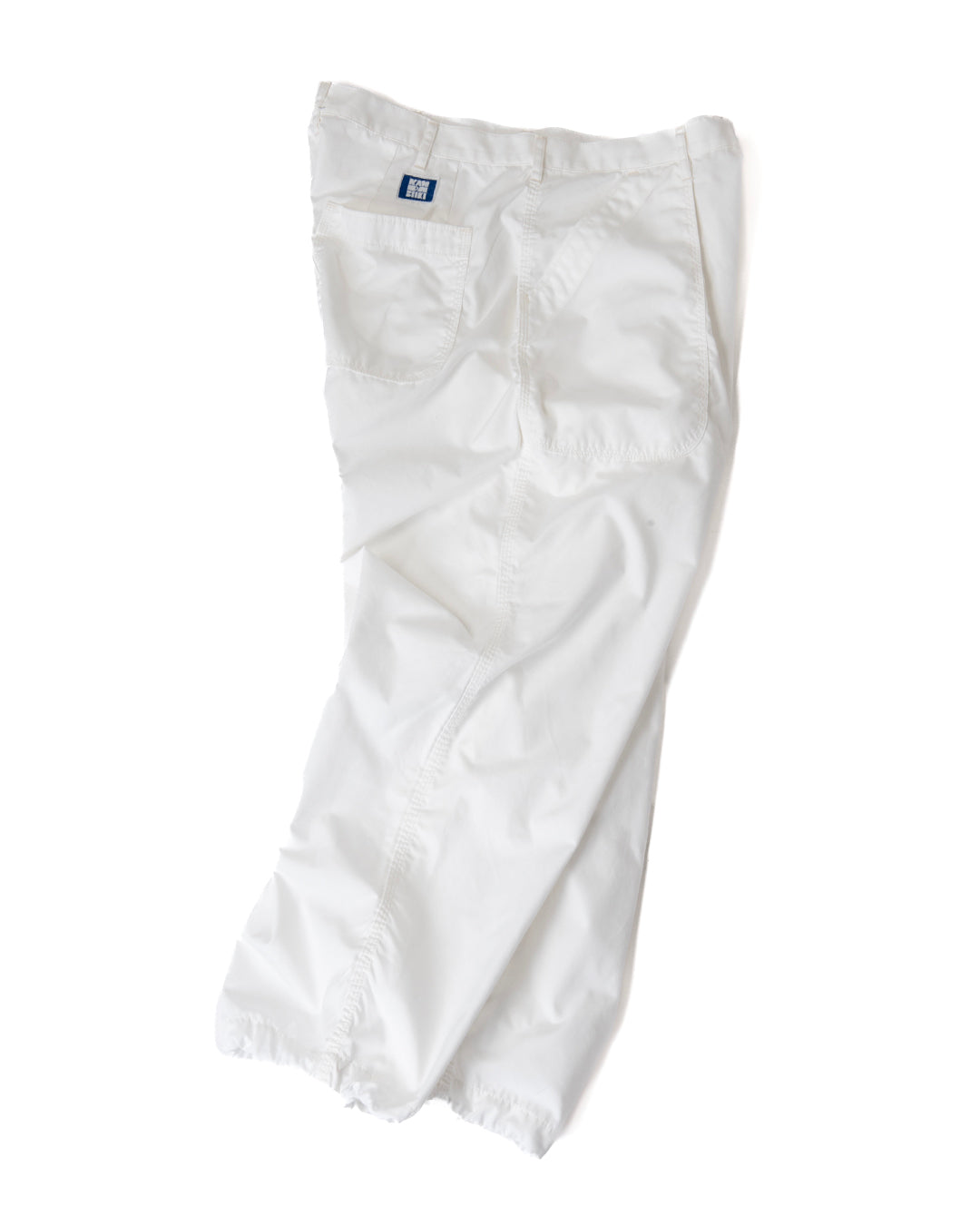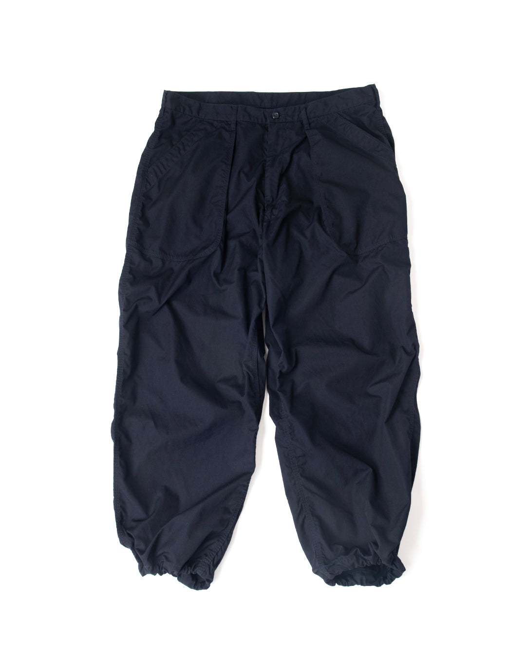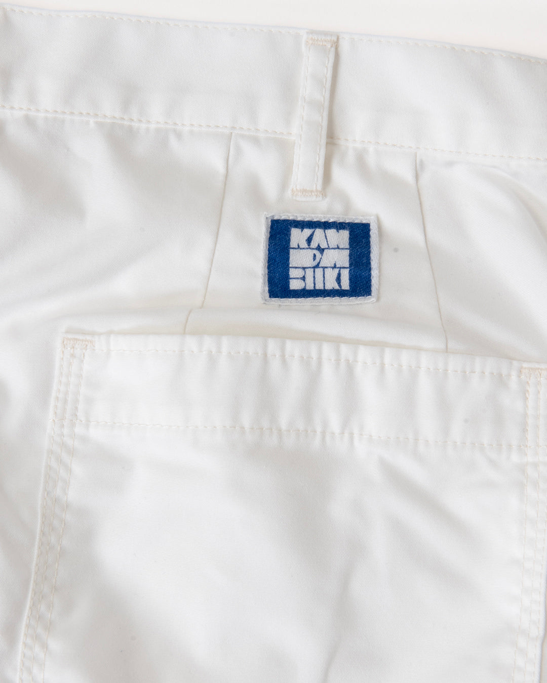 ”KANDA BIIKI”のウェザーシリーズの新作。以前扱っていたビッグサイズをカスタムしたデッドのUS NAVYのユーティリティーパンツをモディファイ。ラウンドしたフロントポケットのデザインはそのままに、各所をトリプルステッチで縫製。サイドやヒップは巻き縫いのトリプルステッチにより、パッカリングを生み出しています。ウエストにはプリーツがあり、ゆったりとしたシルエットです。裾は何かと便利なストリングを内蔵。ダークネイビーは製品染めにより、深い色合いを表現しています。