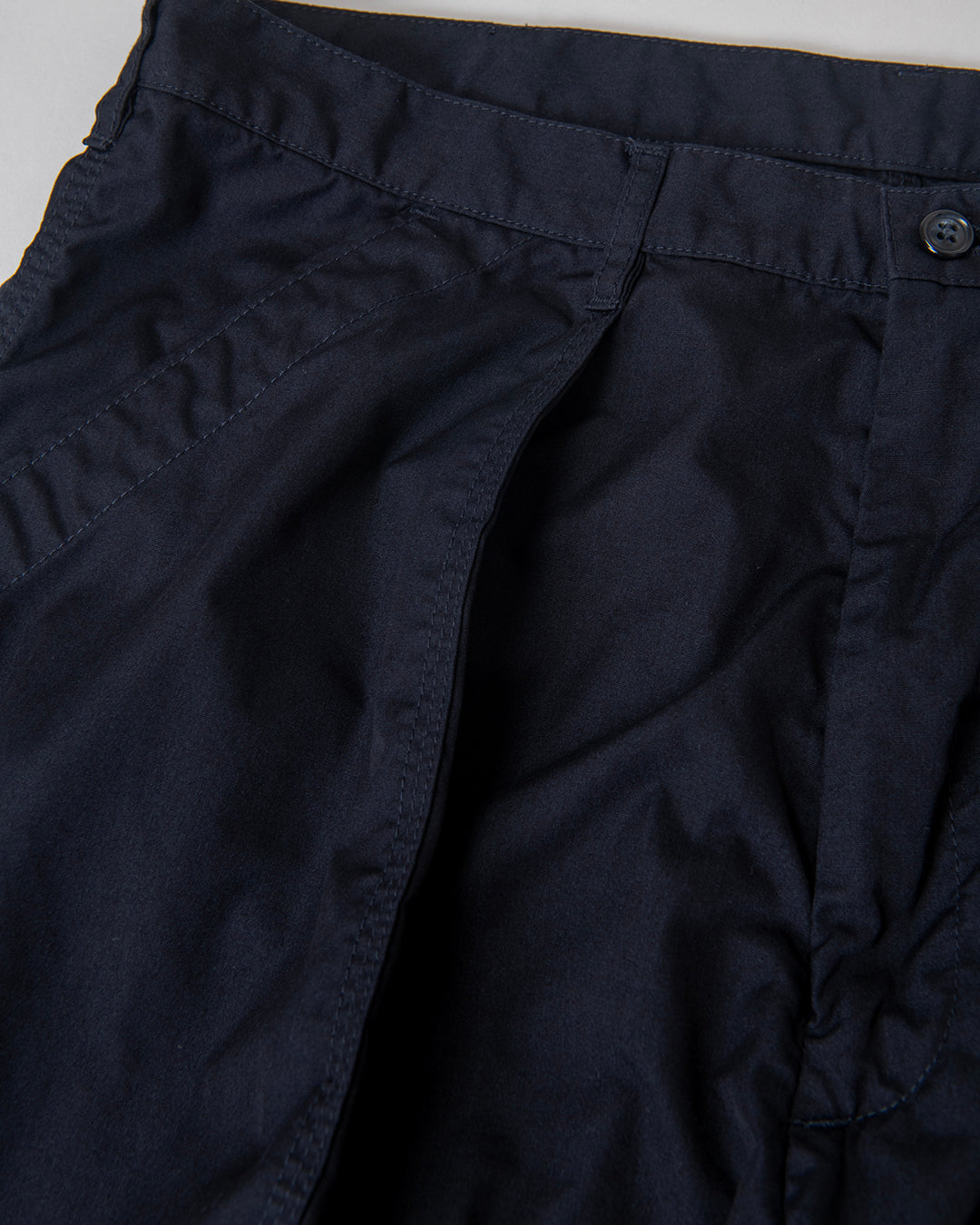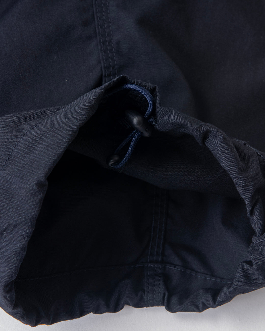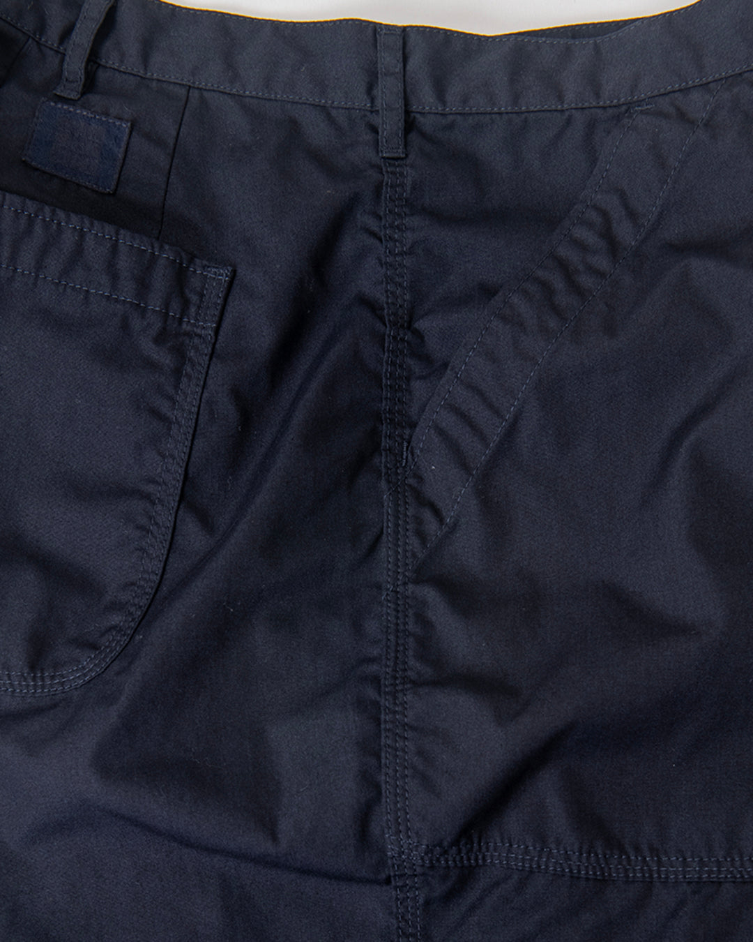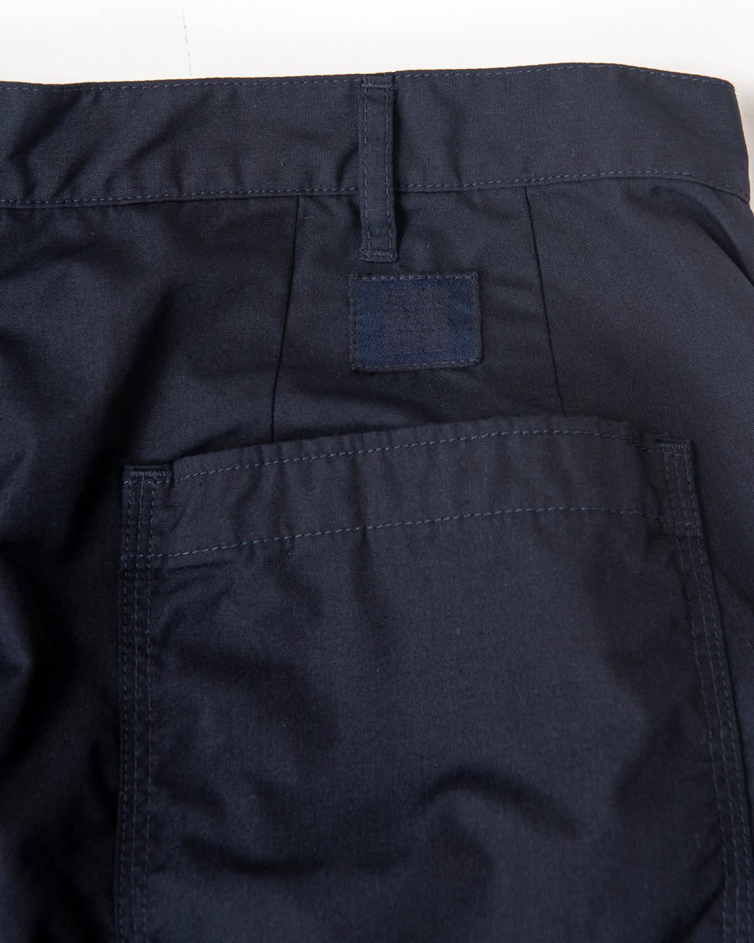 ”KANDA BIIKI”のウェザーシリーズの新作。以前扱っていたビッグサイズをカスタムしたデッドのUS NAVYのユーティリティーパンツをモディファイ。ラウンドしたフロントポケットのデザインはそのままに、各所をトリプルステッチで縫製。サイドやヒップは巻き縫いのトリプルステッチにより、パッカリングを生み出しています。ウエストにはプリーツがあり、ゆったりとしたシルエットです。裾は何かと便利なストリングを内蔵。ダークネイビーは製品染めにより、深い色合いを表現しています。