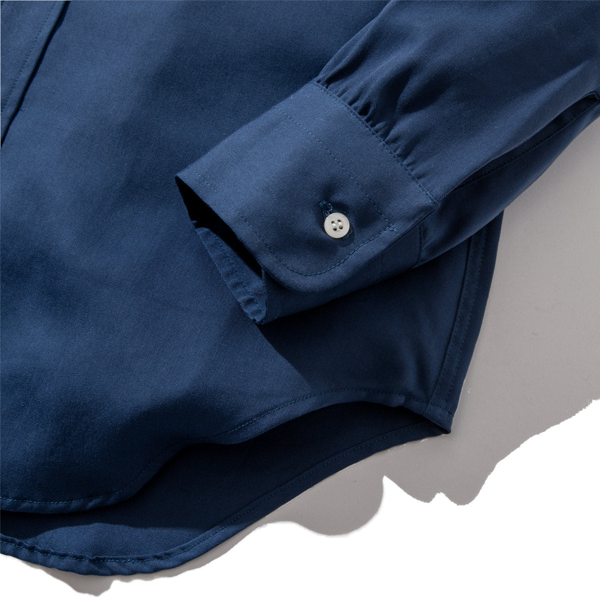 程よい光沢感があり、吸湿性、速乾性のあるテンセル素材で仕立てたオリジナルのボタンダウンシャツ。