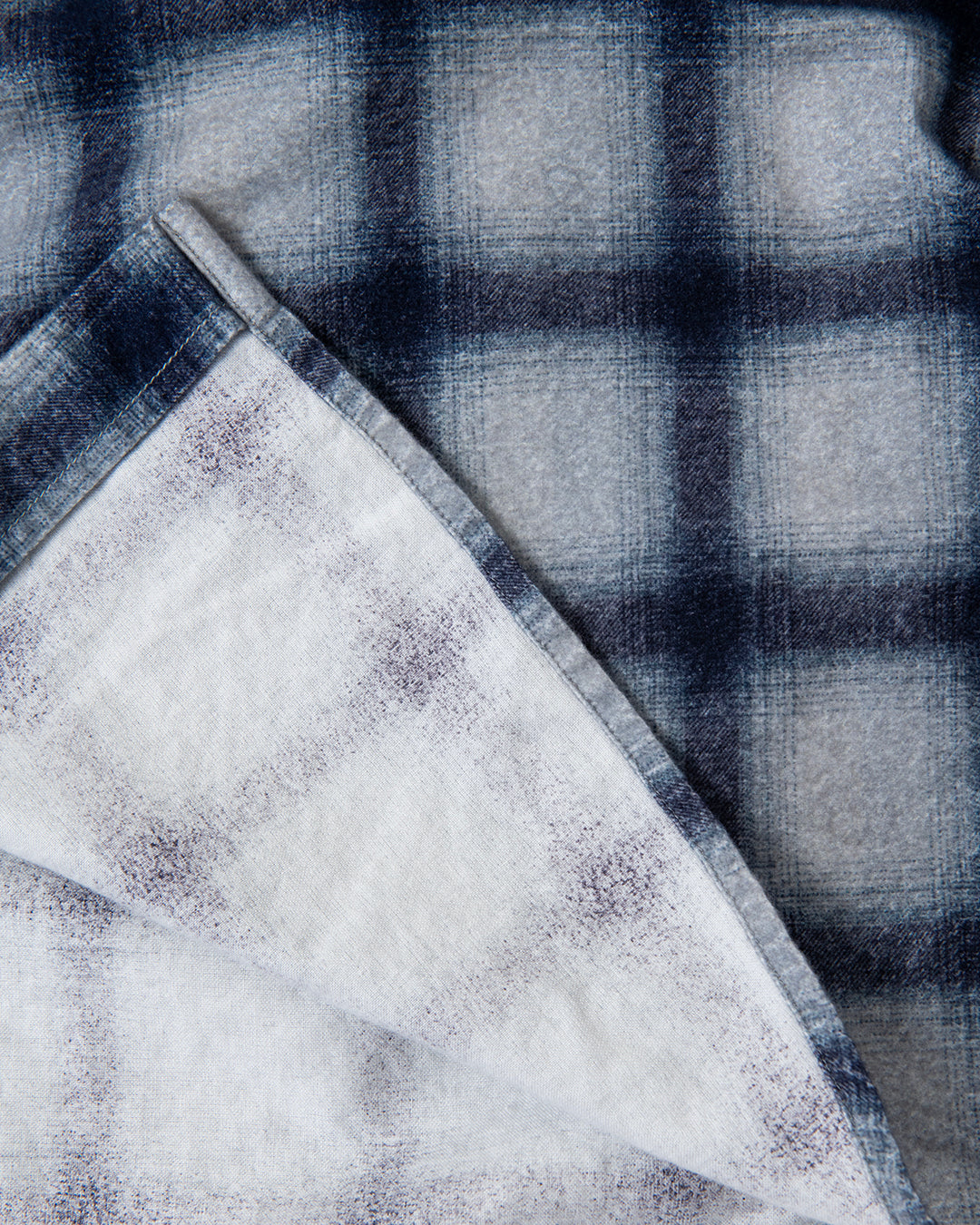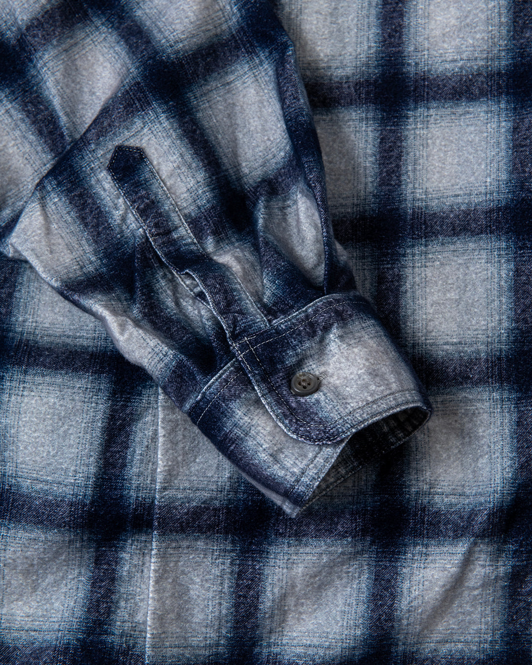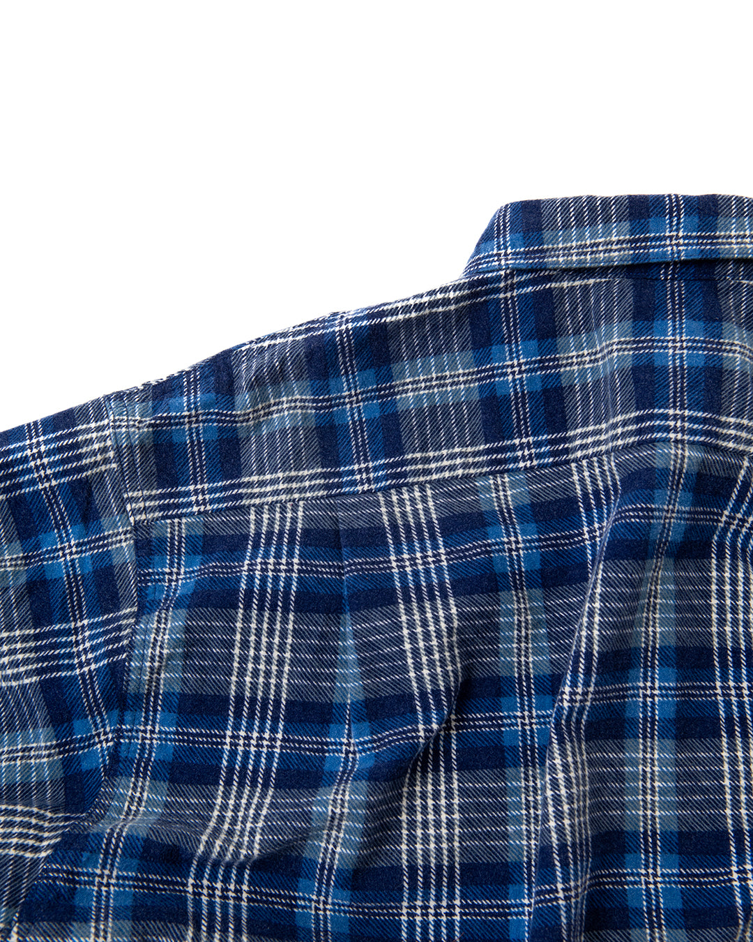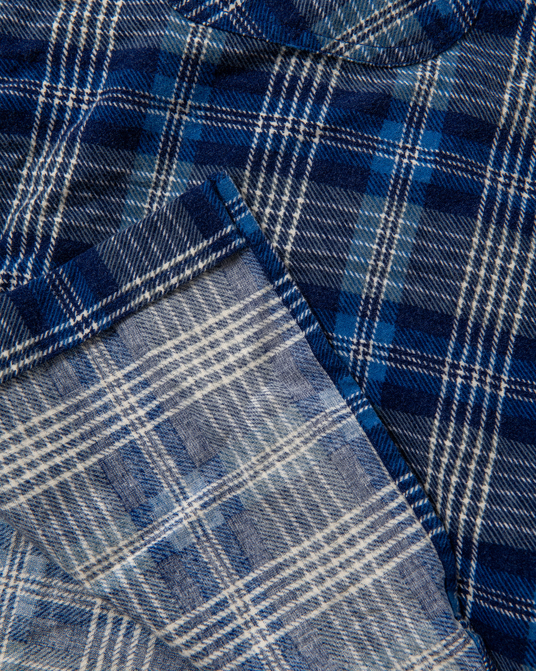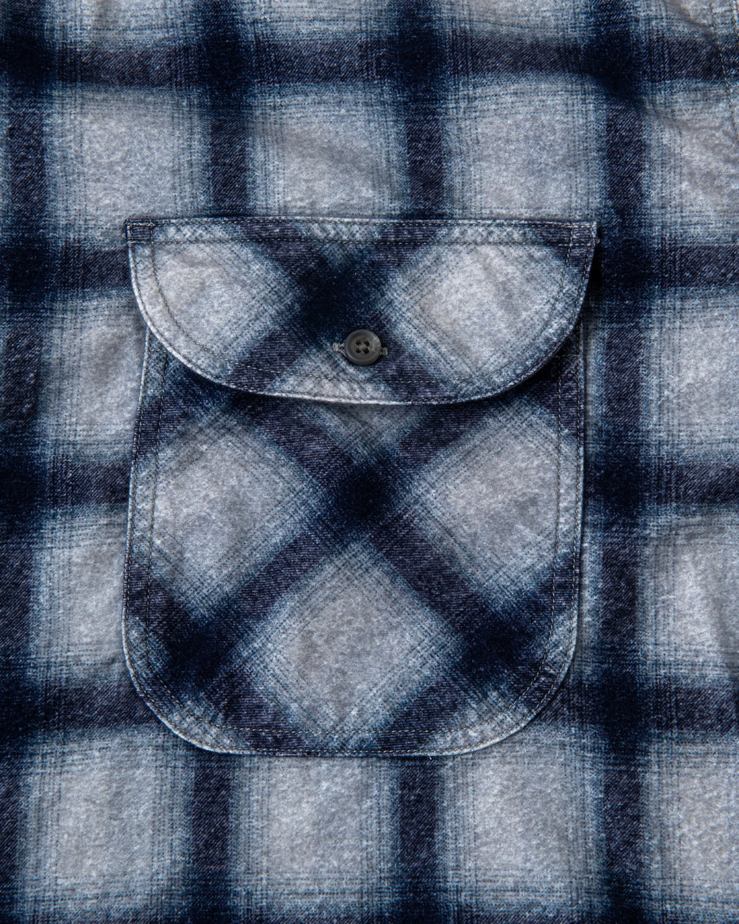 プリントフランネルと言えば、元々は大量生産なイメージであったアイテムでしたが、ここ近年は手掛けるブランドも非常に少なく、USED市場でも少しずつ無くなってきているアイテムの1つです。1色ずつ版を起こして作製していくのですが、柄ってとても奥が深いです。生地屋さんに色合いや細かい柄部分を何度もやり直しをしてもらって、ようやく完成しました。デザインは、昔のワークシャツ(KEYとかLeeとか)を見返して、フラップ付きのフロントポケット、ヨーク部分は袋縫いとあくまでベーシックに。特にネイビーはプリント技法のインクが裏まで染み込んでいますので、勇気を出して裏返して着ていただくのもアリです。