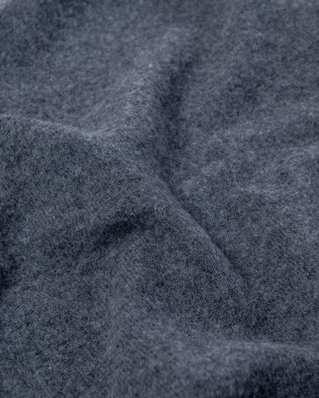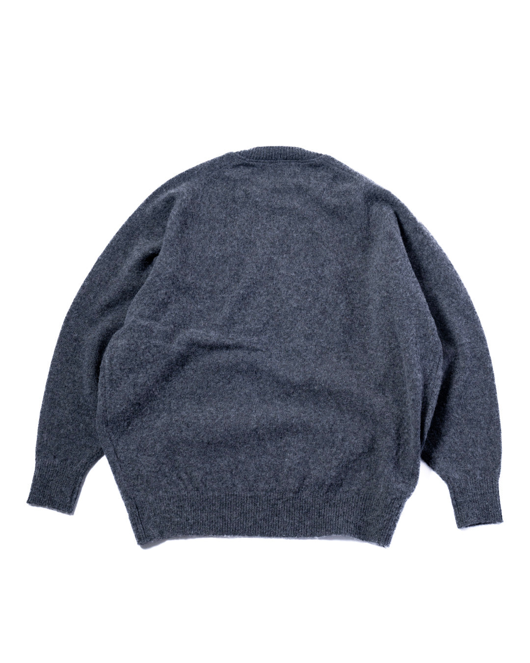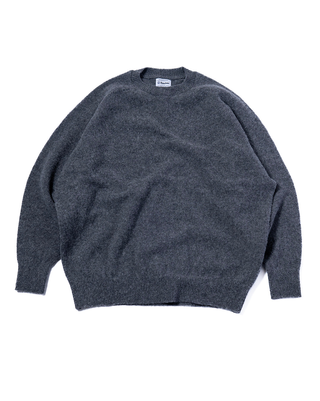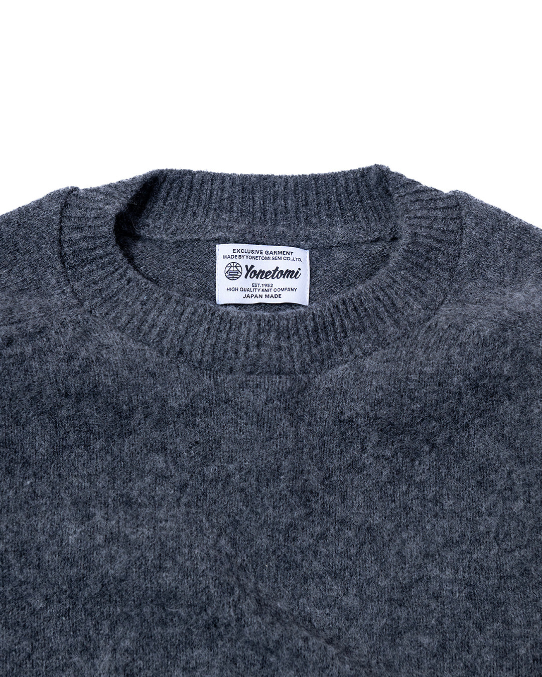 山形県のニットメーカー、米富繊維が手がけるブランドYONETOMIに別注したクルーネックニットに新色を加えて再リリース。生地の表面をトゲのあるチーゼルの実でこすって起毛させることで、柔らかい風合いの演出と高い保温性を持つ仕上がりに。素材にはリサイクルウールを使用しました。